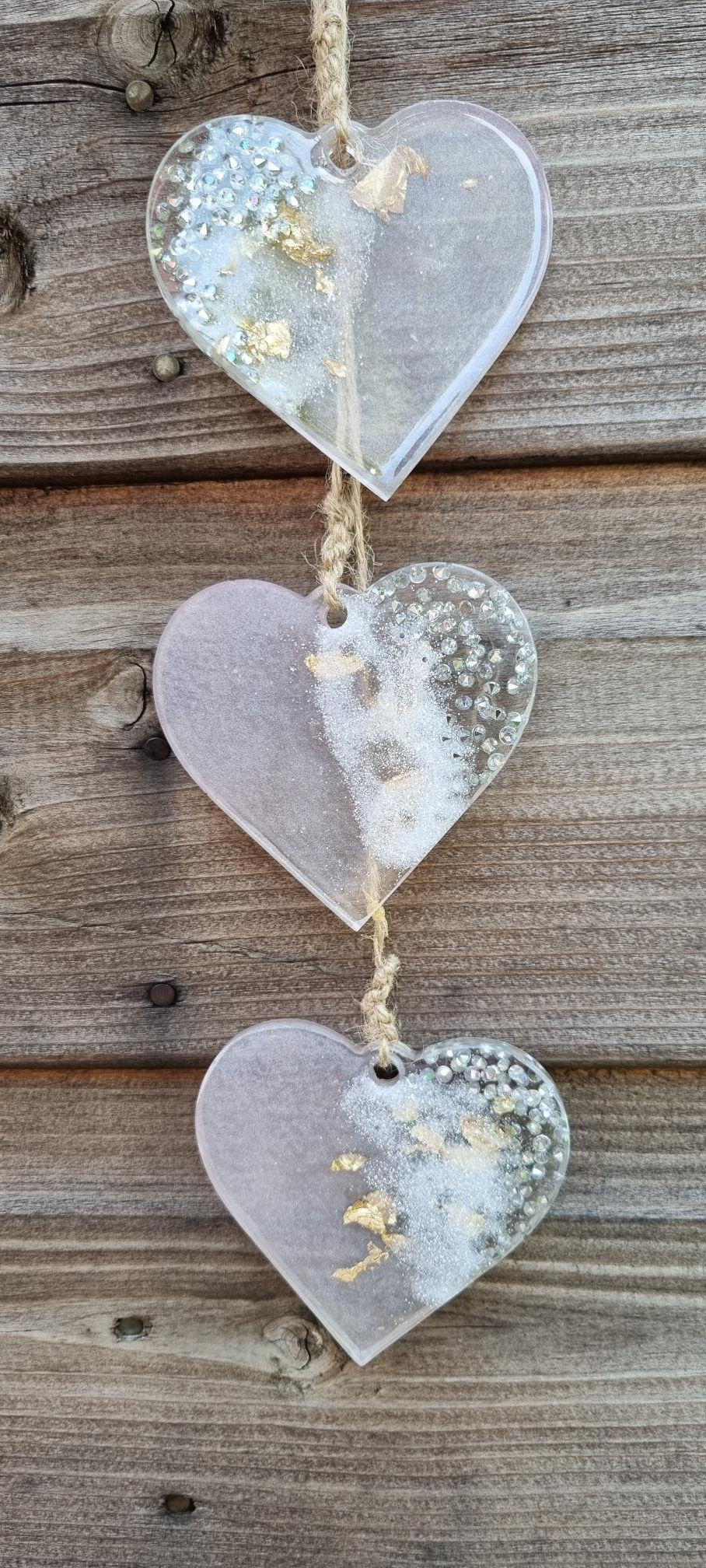 Sun catcher hearts. Sea green with gold leaf or soft pink with diamanties